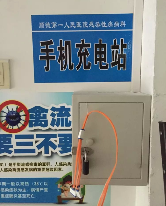 對科主任訴說了我的困惑后,我們科王鵬主任,充分發(fā)揮了他的小宇宙,在病房休閑區(qū)安裝“自助手機充電站”,方便患者。