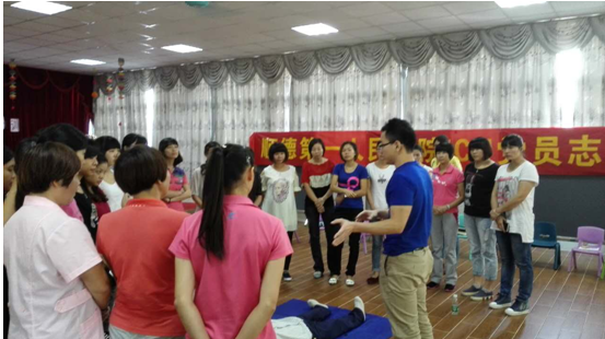 培訓(xùn)課上,首先由梁惠玲主管護師介紹幼兒看護的注意事項及常見的急癥表現(xiàn)。接著由劉海峰主任醫(yī)生用生動的語言為師生們講解了小兒常見急癥的救護方法以及心肺復(fù)蘇的理論知識,心肺復(fù)蘇的救命黃金時刻以及救助過程中的正確步驟、注意事項,并結(jié)合案例,借助器材講解操作要領(lǐng),做了現(xiàn)場演示。教師們專心聽課,認真做筆記,不時用手機拍下課件,針對工作中的遇到問題提出疑問,黨員志愿者都做出了耐心的解答。教師們對心肺復(fù)蘇的認知由模糊漸漸變得清晰,并初步了解了相關(guān)的操作步驟。