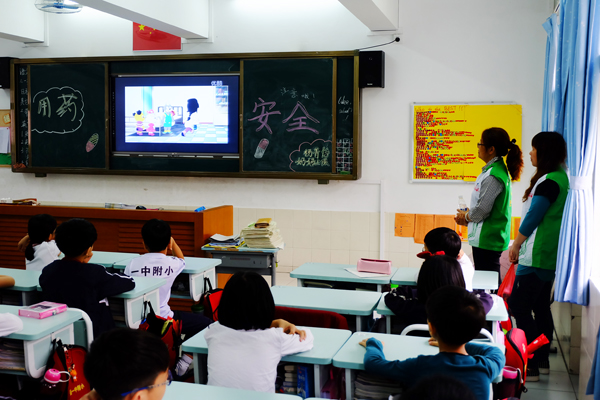 近年來,兒童藥害事件時有發(fā)生,不合理或誤服藥物成為兒童成長環(huán)境的安全隱患。因此,提高兒童安全用藥知識成為藥品管理及使用單位的職責(zé)所在。有見及此,4月22日藥品安全合作聯(lián)盟順德分站志愿者開展了 “安全用藥進(jìn)校園”活動。黃凱文主任藥師攜同順德分站志愿者在佛山市順德區(qū)第一中學(xué)附屬小學(xué)開展了別開生面的知識講堂。本次活動以“一個孩子,一個家庭”為主題,通過學(xué)生課堂和宣傳資料,整體提高學(xué)齡兒童及其家長的安全用藥知識。