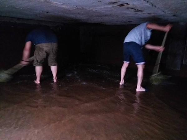 本次的工作的重點(diǎn)難點(diǎn)在于水池建筑條件限制,加大了清洗的難度。1號(hào)總水池面積約85平方米,儲(chǔ)水量約213噸,但池口只有0.6米寬,漆黑的池里僅靠工作人員頭上的礦燈照明,而部分儲(chǔ)水池高度不足1.6米,工作人員只能彎著腰忍著酸痛堅(jiān)持工作。工作人員克服蓄水池內(nèi)的各種困難,在漆黑的水池里有條不紊地進(jìn)行抽水、排污、洗刷、沖洗、消毒等各項(xiàng)清洗工作??偹厍逑赐戤叄ぷ魅藛T顧不上透口氣,頂著烈日,匆匆吃完盒飯,又繼續(xù)投入下個(gè)水池的清洗工作中。他們的努力工作,為的只是搶時(shí)間、抓進(jìn)度,在最短時(shí)間內(nèi)將水池清洗干凈,盡量不影響臨床用水。